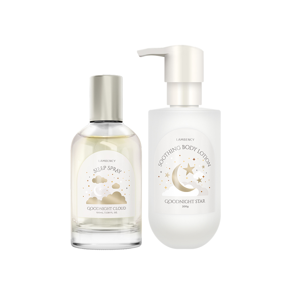 以紅牡丹與甜麝香的「晚安雲朵噴霧」,搭配薰衣草香調的「晚安星辰乳液」