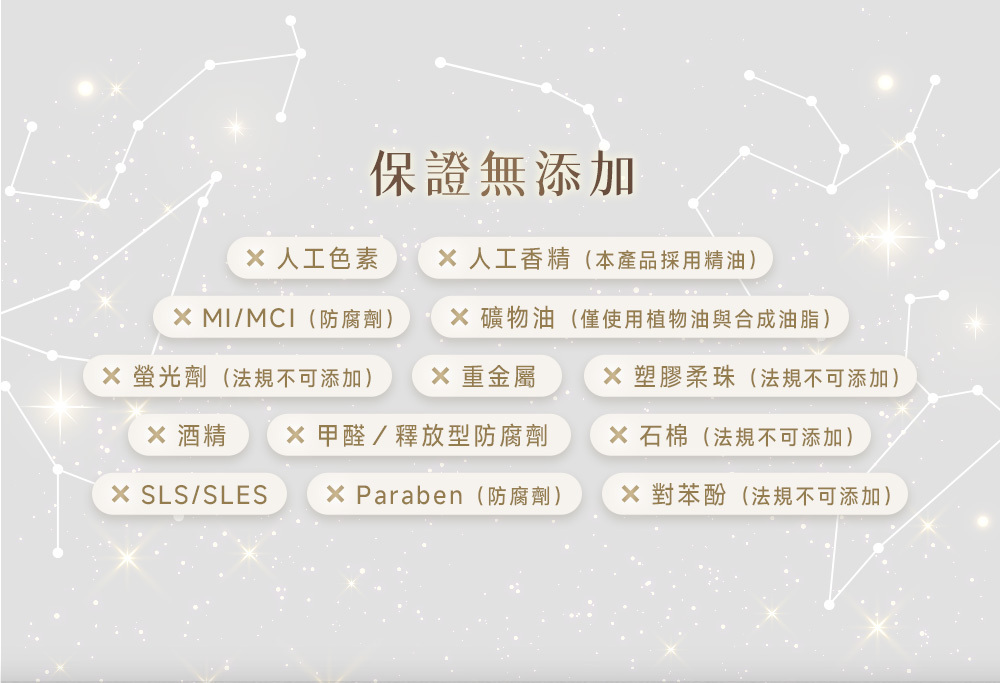✧ 植物萃取 × 維他命B5 × 精油舒緩配方