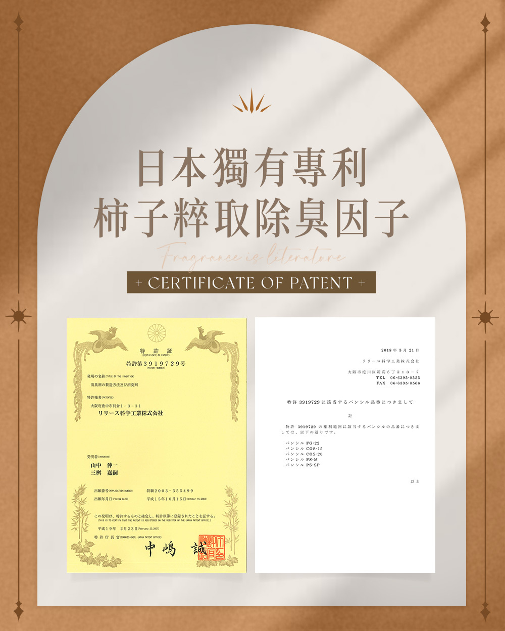 ✦ 日本獨有專利柿子萃取除臭因子,先除臭再芳香